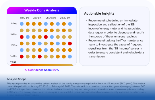Applies domain-specific models trained on industrial energy behaviour and operational constraints to generate recommendations that are accurate, actionable and impact-focused.