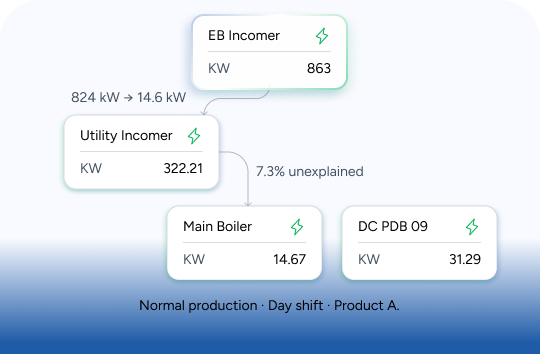 Organises disparate data streams into a time-aligned, unified energy graph that connects consumption, production and cost for accurate enterprise-wide analytics.